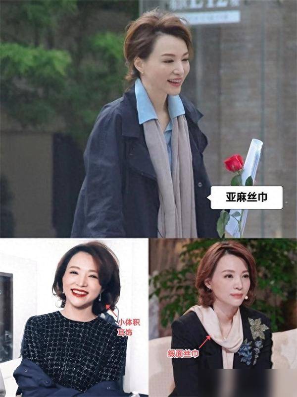 除了搭配配色、鞋子,董卿的穿搭也给我们带来了新的思维方式。她告诉我们,中年女人可以尝试 搭配不同材质的衣物,将不同的质感结合在一起,打造出更丰富的造型。