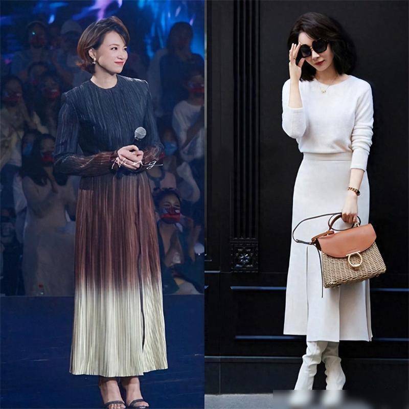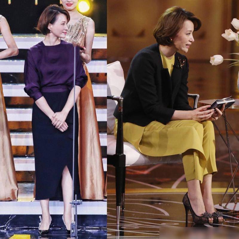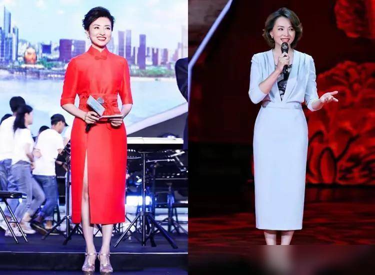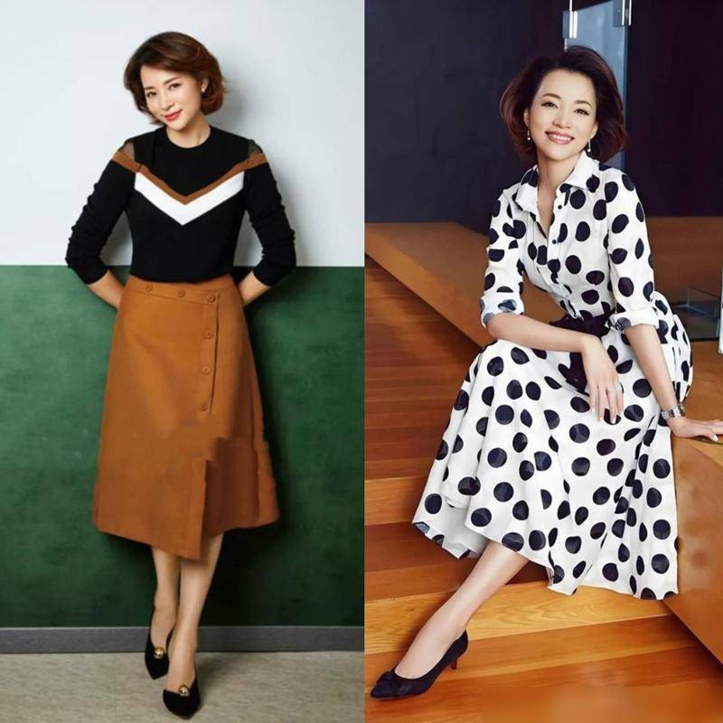 董卿的穿搭风格, 强调裙子不配运动鞋,色不过三。这样的选择,既符合了中年女性的气质,又避免了廉价花哨,给人一种高级、优雅的感觉。